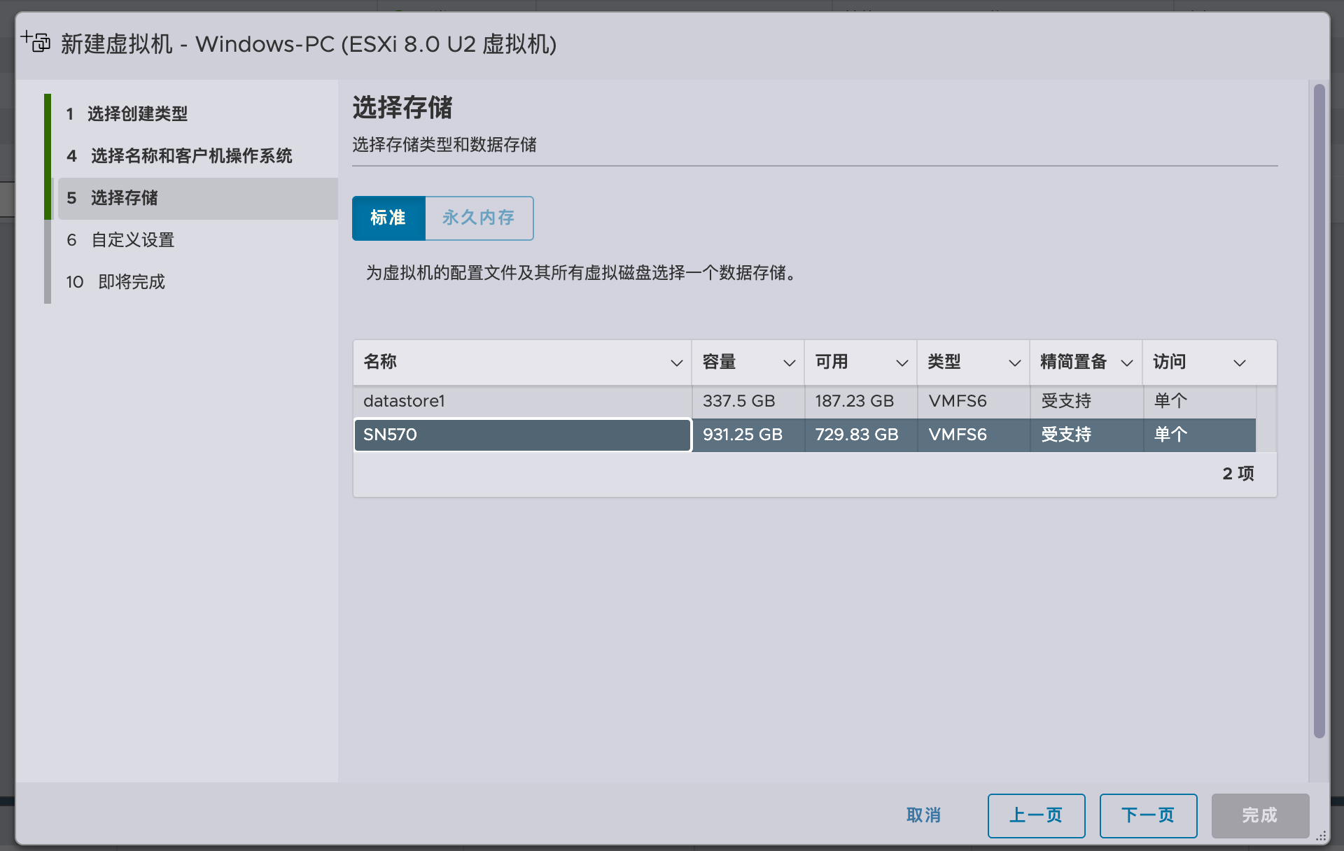 存储 | 500GB NVMe SSD | 256GB SSD | 推荐直通整块物理盘 |