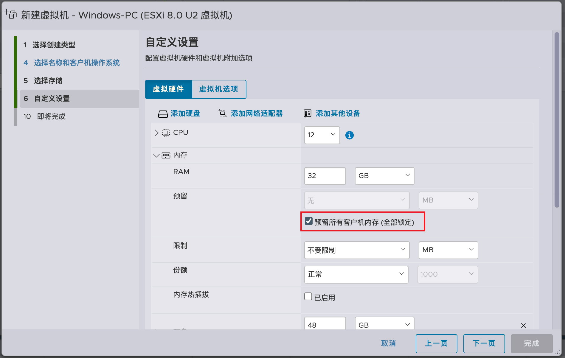 内存 | 32 GB | 16 GB | GPU 直通必须预留全部内存 |