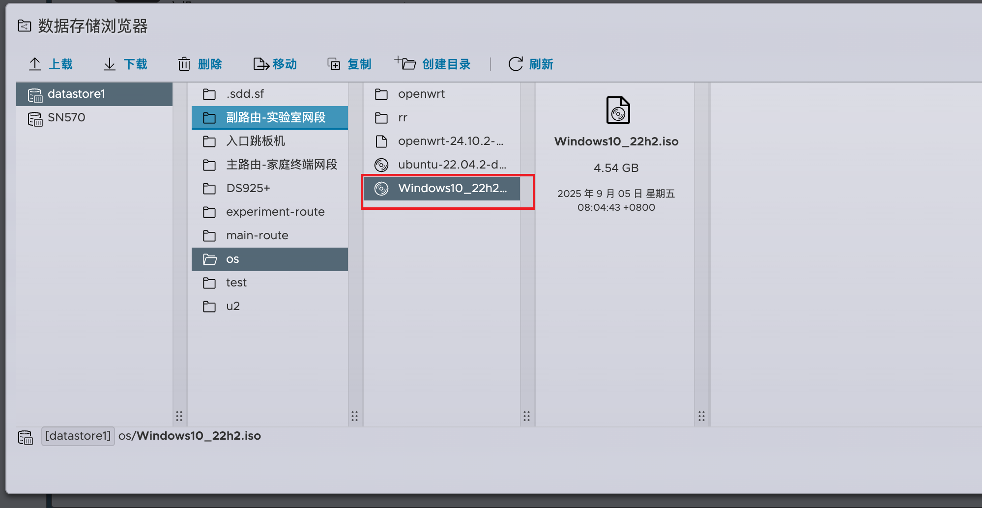 访问 Microsoft 官方下载页面,推荐下载:Windows 10 Pro,下载完成后,将 ISO 文件上传到 ESXi 数据存储。