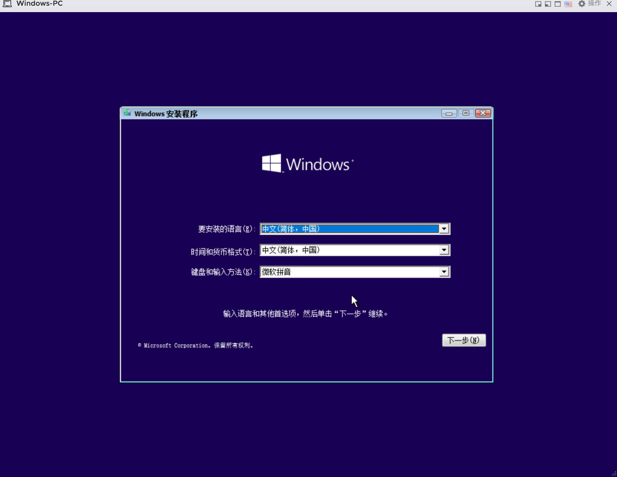 点击【打开电源】开启 Windows 系统安装,Windows 安装过程相对简单,主要包括以下阶段: