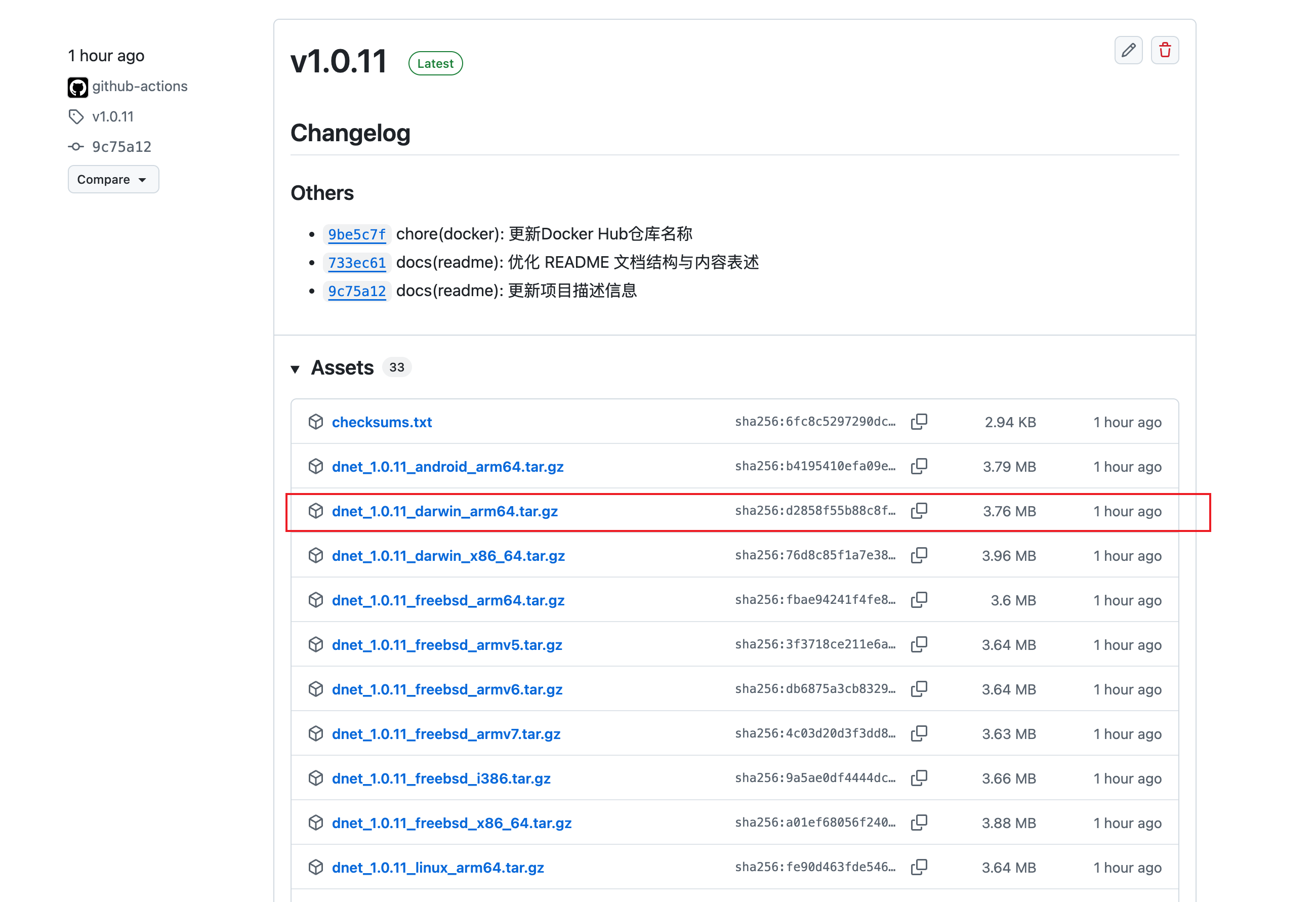 打开 D-NET Releases 页面,选择合适的架构下载安装包并解压,这里以 macOS ARM 版本为例。