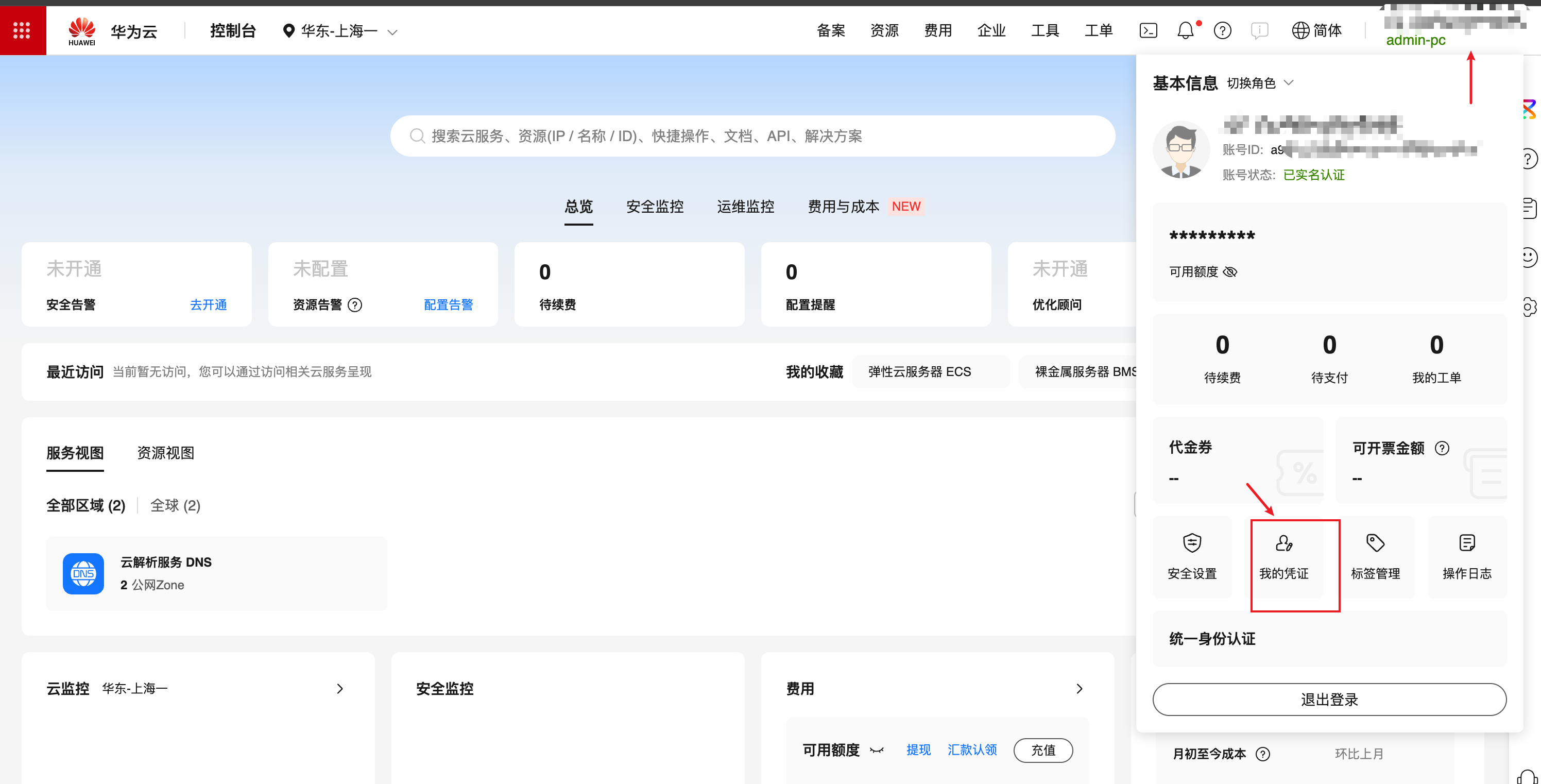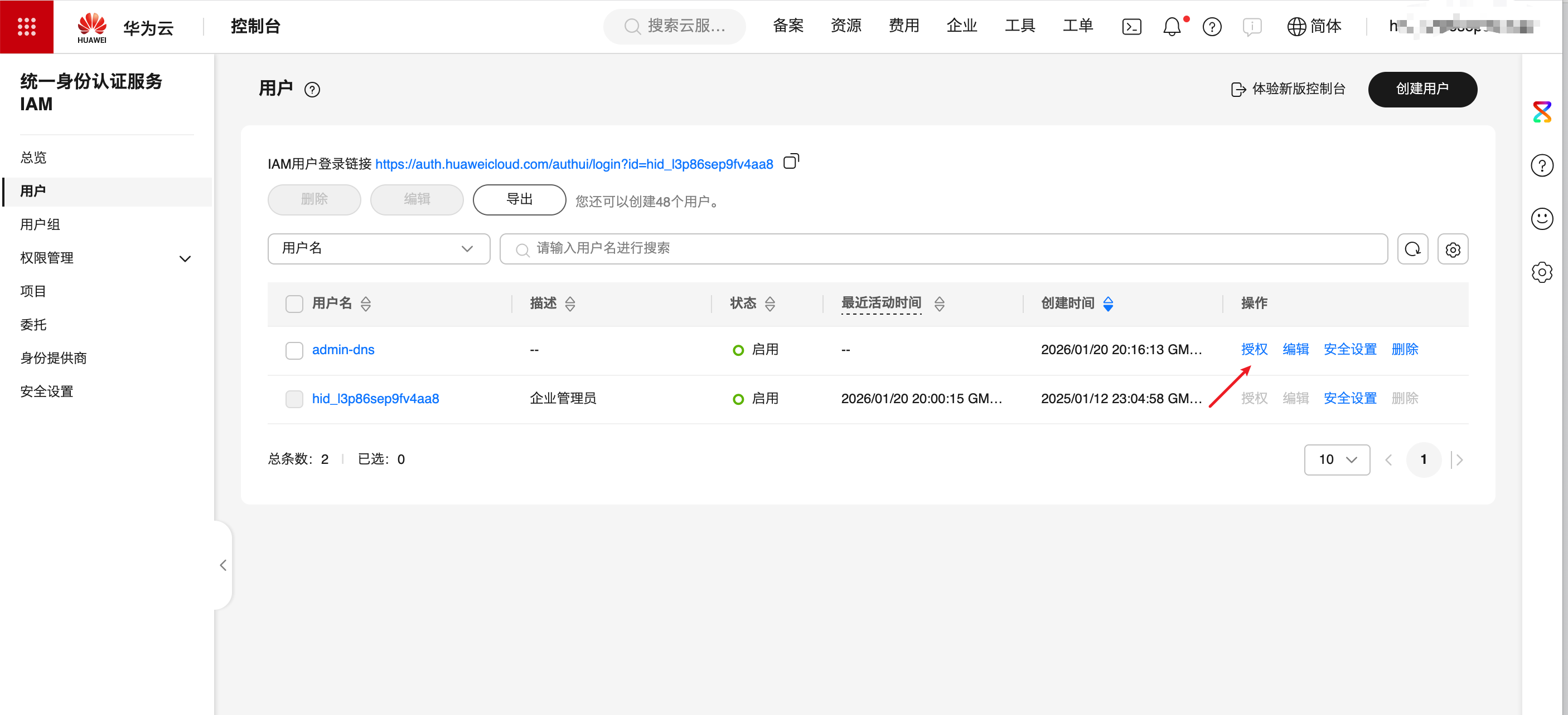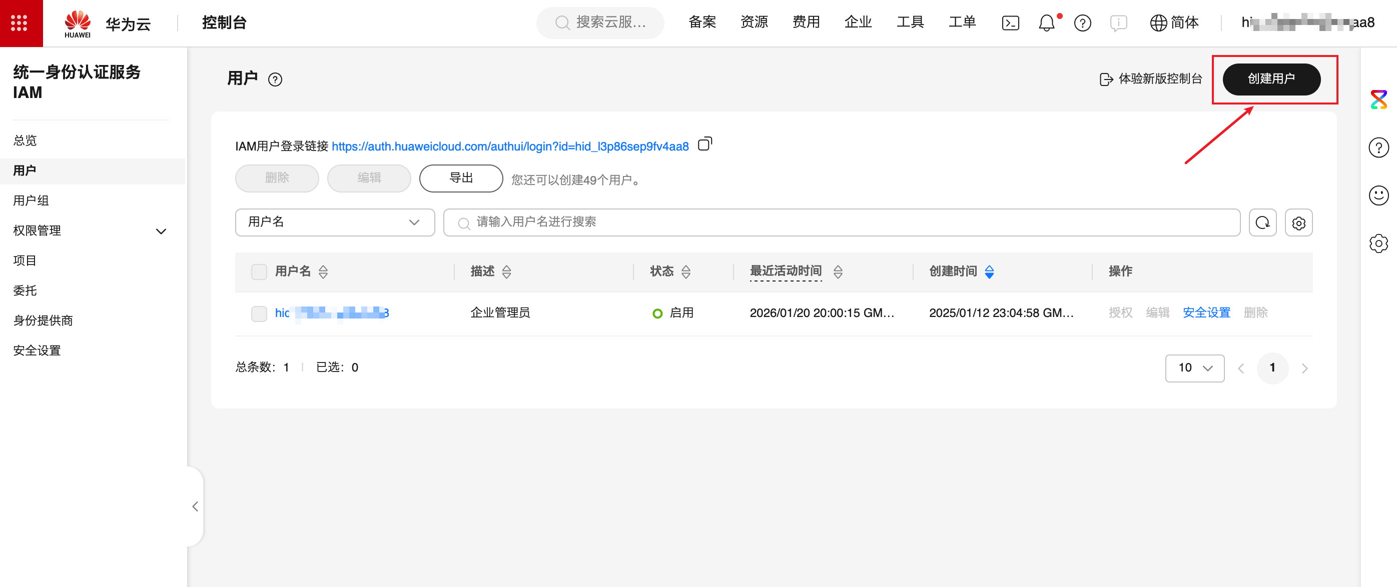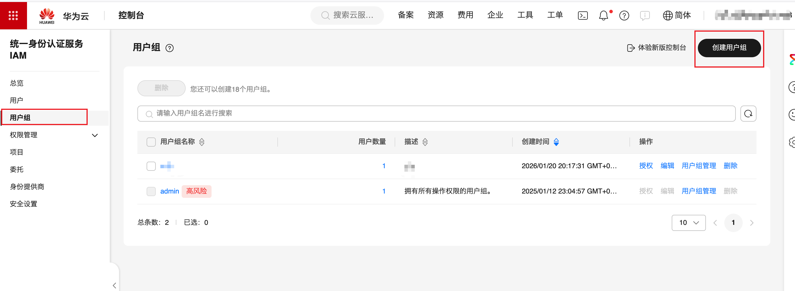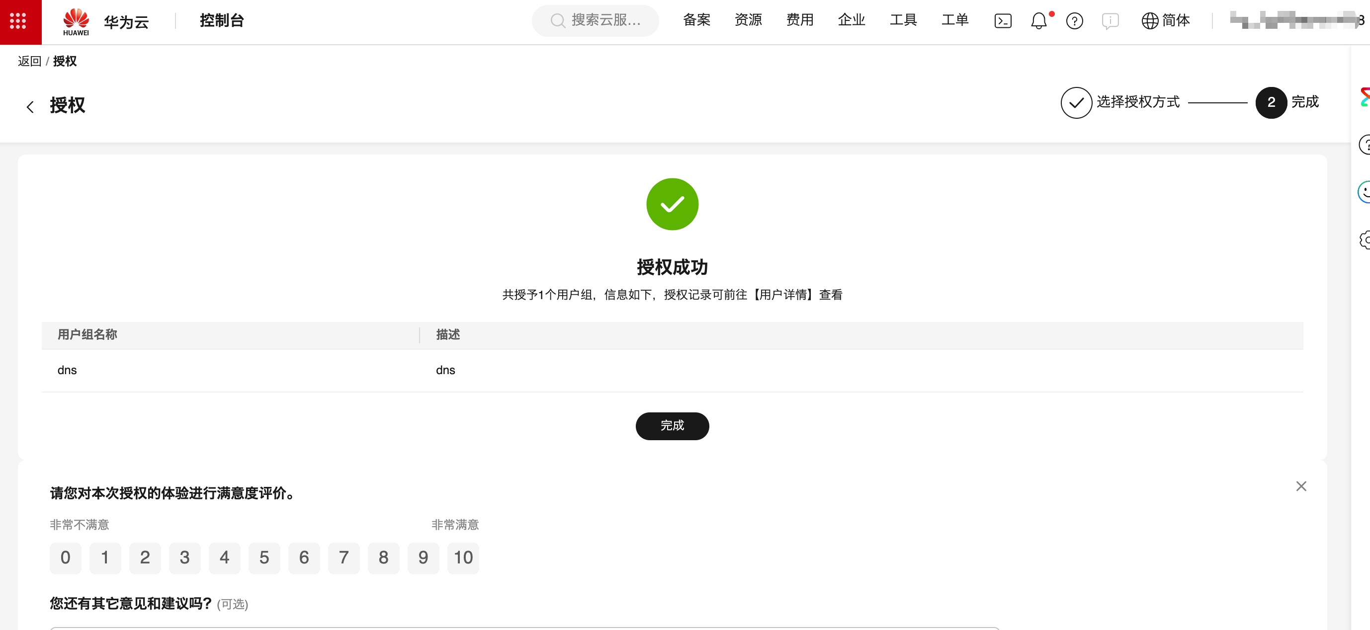 华为云的 API 访问必须使用 IAM 子账号进行认证,主账号无法直接使用。因此需要创建 IAM 子账号并授予 DNS 管理权限,否则证书申请和续签会失败。