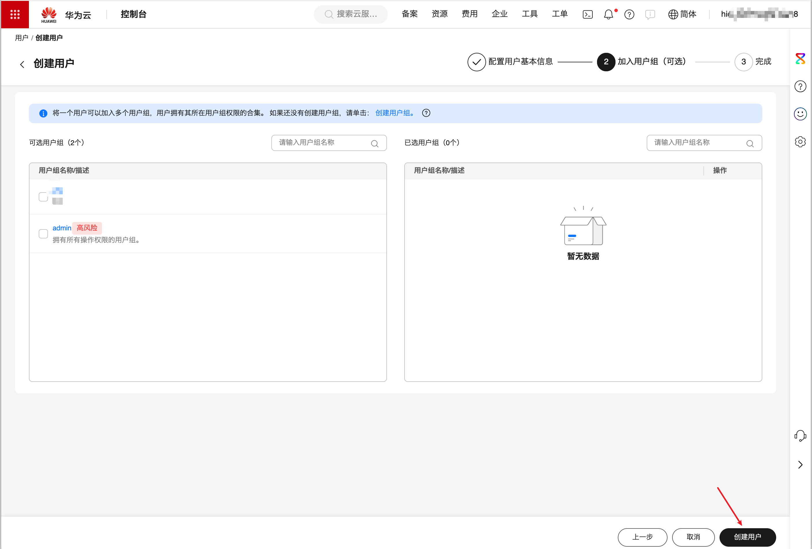 创建并配置好用户组后,需要将之前创建的 IAM 用户添加到该用户组中。