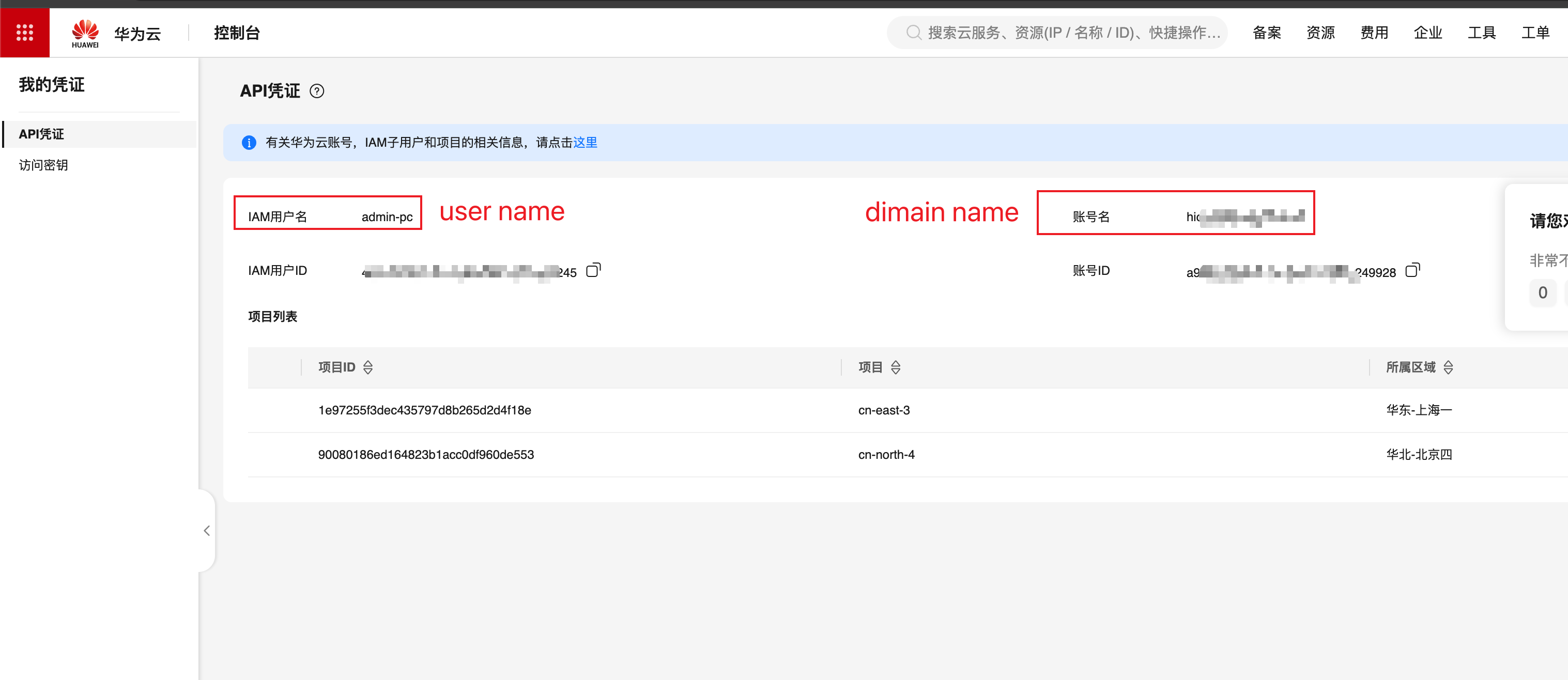 HUAWEICLOUD_DomainName=your_account_name # 华为云账户名