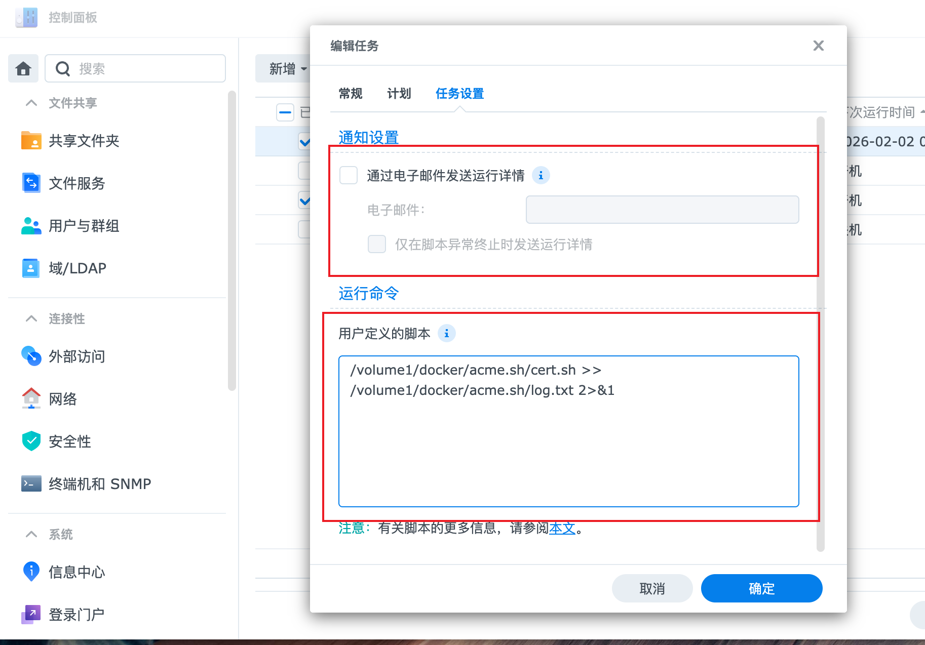 /volume1/docker/acme.sh/log.txt日志文件获取详细错误信息