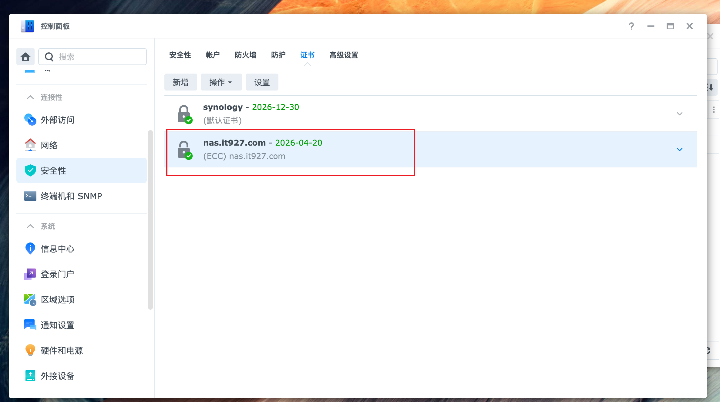 证书申请成功后,需要在群晖 DSM 中进行一些配置,才能正常使用 HTTPS 访问。