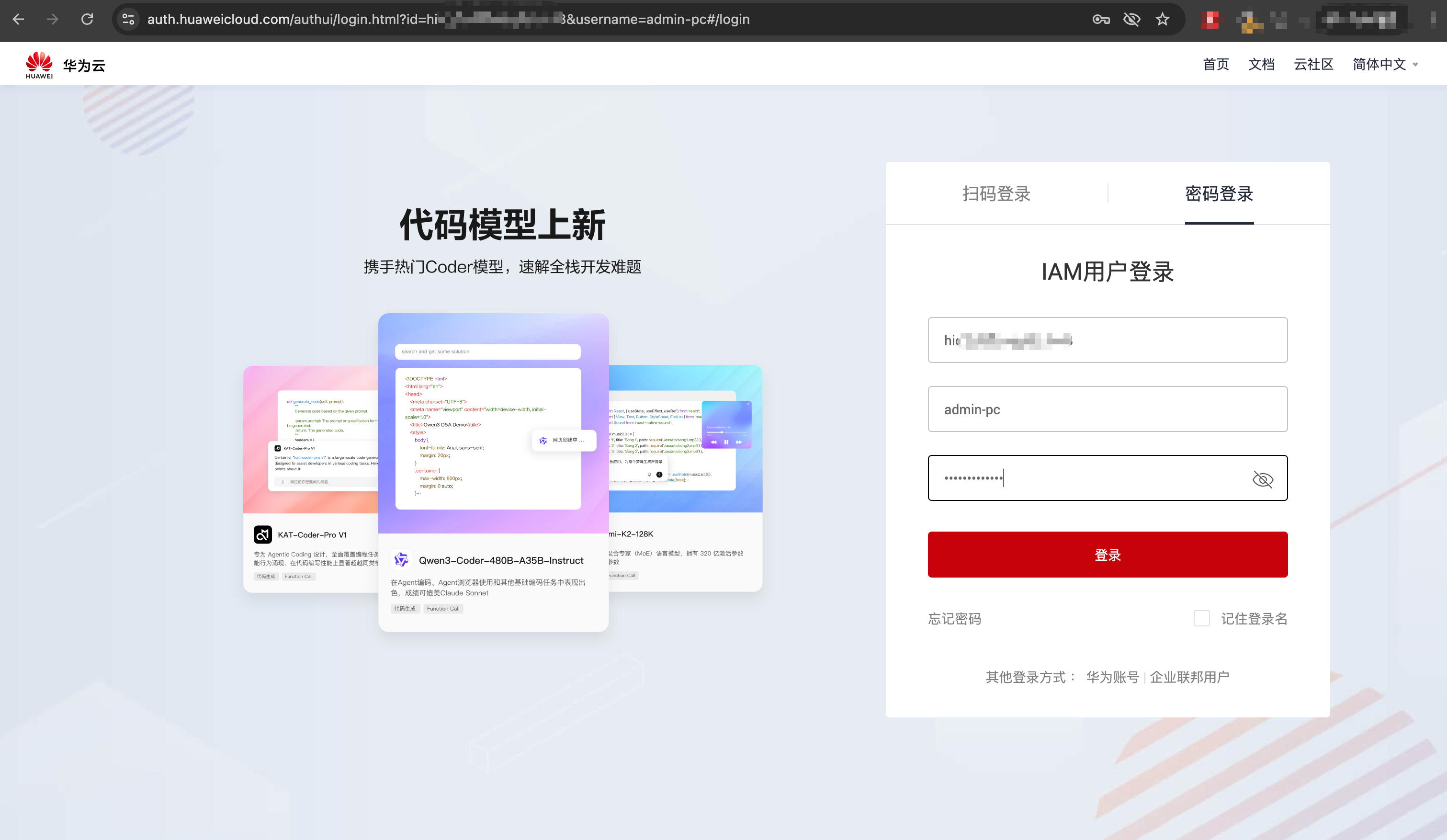 HUAWEICLOUD_Password=your_iam_password # IAM 用户密码